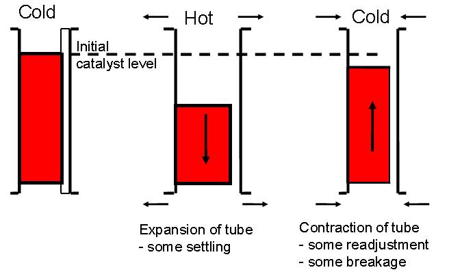 درخصوص مشکلات در زمان عملکرد میتوان گفت که  یکی از مشکلات کاتالیست‌ها، خردشدن آن‌ها در حین سرد و گرم شدن ریفرمر است که پس از راه‌اندازی ریفرمر، به دلیل گرما، حجم تیوب‌ها افزایش می‌یابد و در نتیجه کاتالیست درون تیوب نشست می‌کند. در هنگام سرد‌کردن ریفرمر، ابعاد تیوب دوباره کاهش می‌یابد و درنتیجه باعث فشار به کاتالیست و خرد‌شدن آن می‌شود.