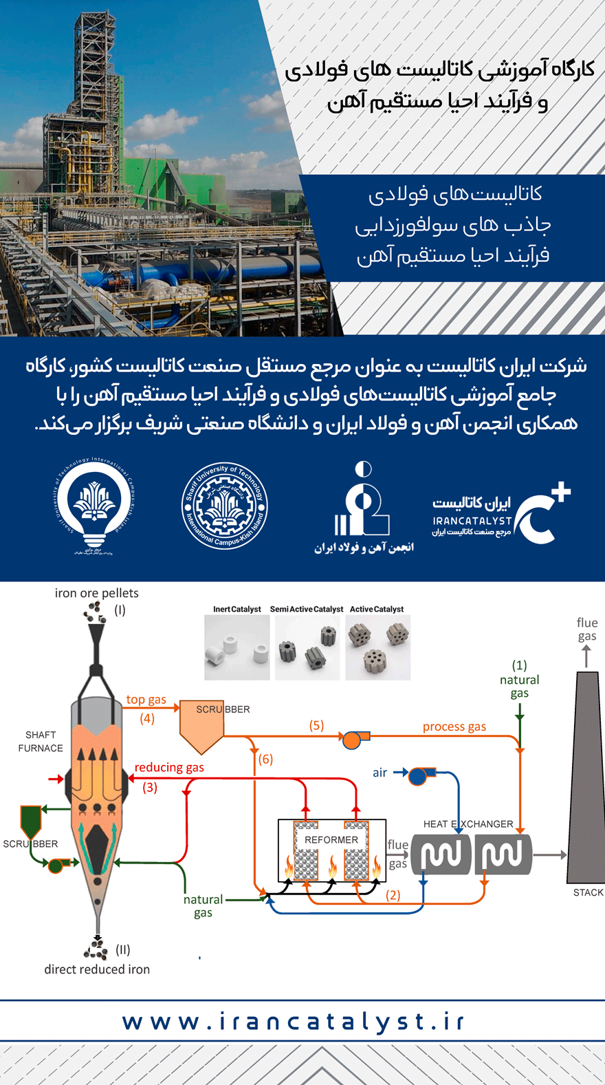 کارگاههای آموزشی این شرکت با رویکرد بازآموزی و مهارتافزایی فرآیندهای کاتالیستی برگزار میشوند و تمرکز آنها بر بررسی چالشهای موجود در فرآیند احیای مستقیم آهن و ارائه راهکارهای کاربردی و فناورانه از طریق تحلیل Case Studyهای واقعی است.