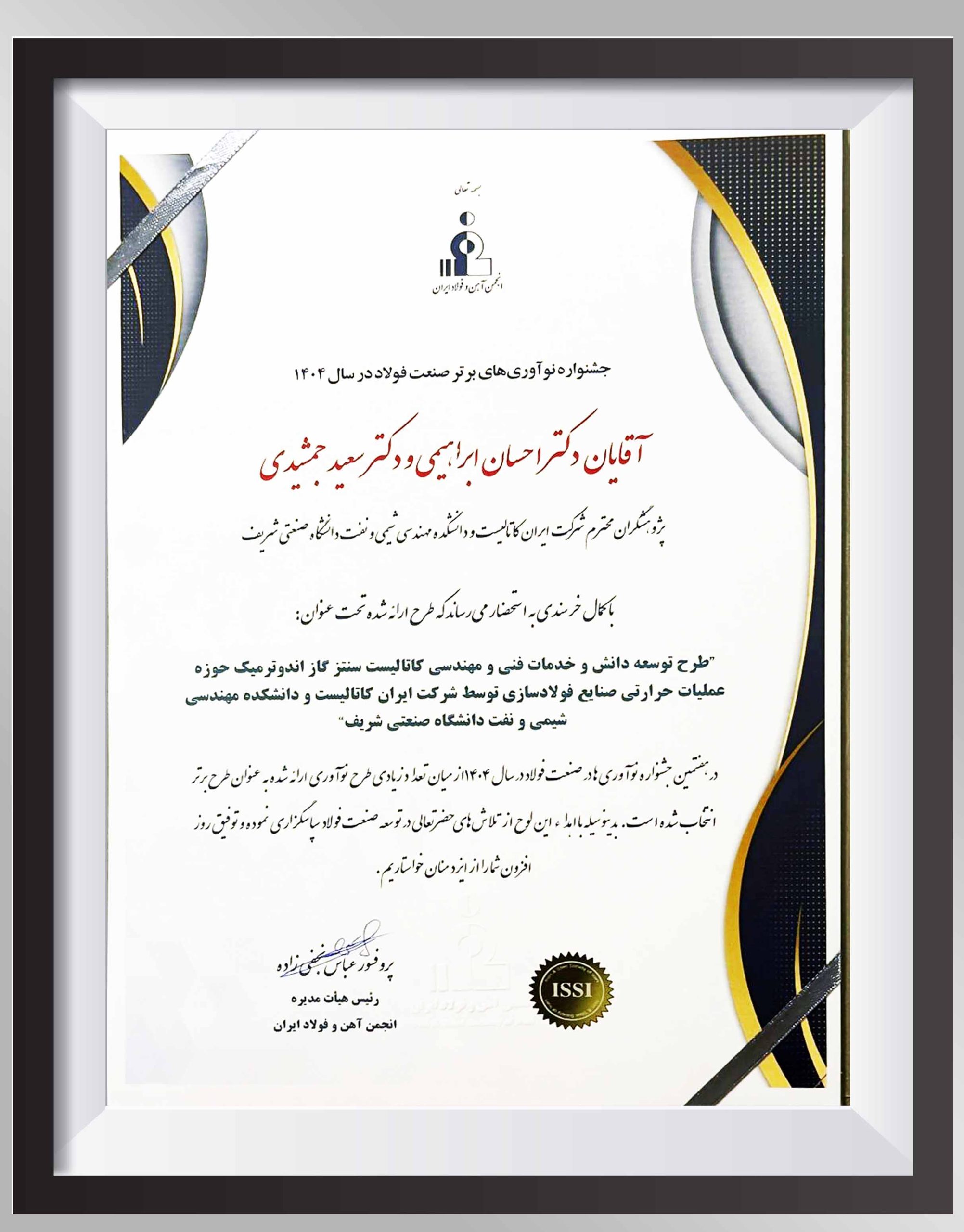 طرح مشترک ایران کاتالیست و دانشگاه صنعتی شریف به عنوان برترین نوآوری صنعت فولاد در سال ۱۴۰۴ انتخاب شد